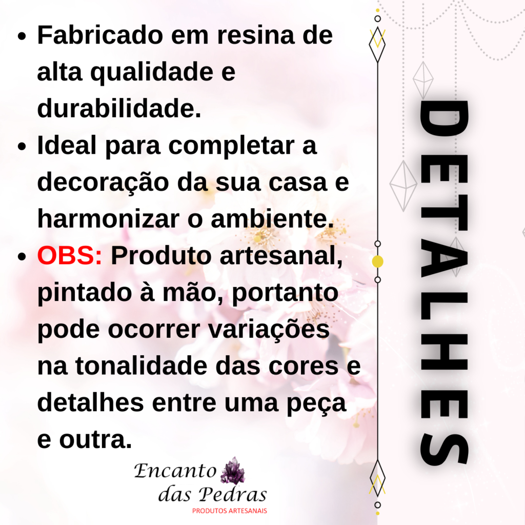 - Produto artesanal, pintado à mão, portanto pode ocorrer variações na tonalidade das cores e detalhes entre uma peça e outra